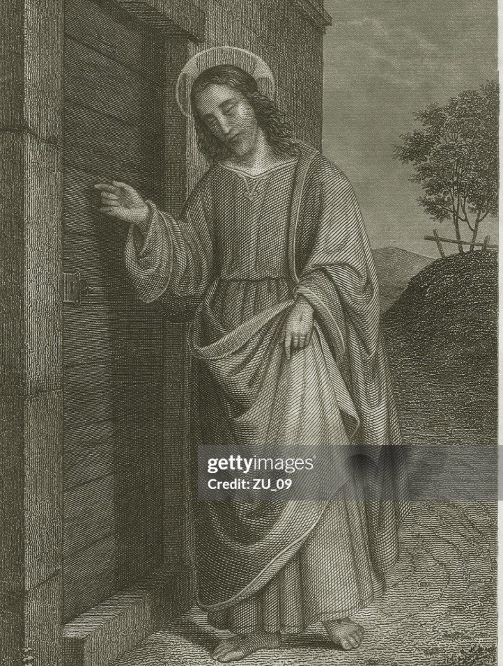 Here I am! I stand at the door and knock. If anyone hears my voice and opens the door, I will come in and eat with that person, and they with me. – Revelation 3:20